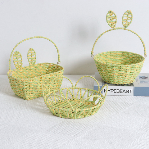 Cesta de presente feita à mão em forma de orelha de coelho, cesta de flores de Páscoa feita à mão para o feriado no atacado